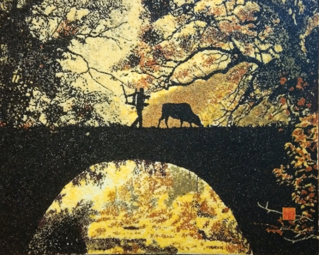 2013年发明炒制粮食作画方法。