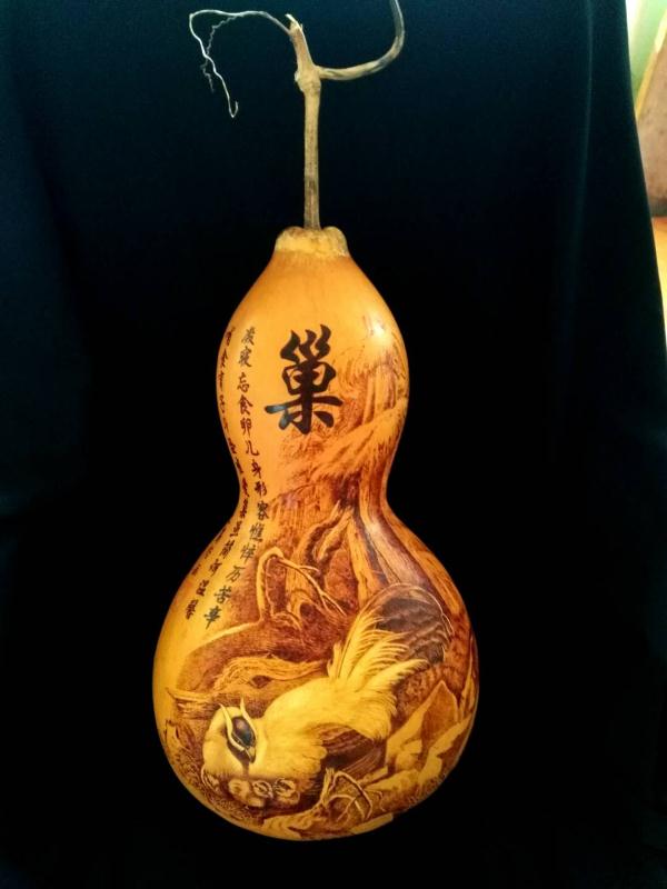 谢春俊,1966年出生,现为天津市民间文艺家协会会员,天津市宝坻区民协副主席,天津市民俗文化艺术协会会员,天津市妇联手工业协会会员,河北玉田协会协会荣誉顾问。从事葫芦,木板烙画多年,作品多次参加国内省市级民间艺术大展并多次荣获奖项。2017年于天津全运会向全国运动员展示天津民间艺术,作品均被运动员收藏,同年木板烙画和葫芦烙画入选迎庆党的十九大全国农展馆艺术大展。2018年元月,与几名民间艺术爱好者组织成立了天津市宝坻区民间文艺家协会。